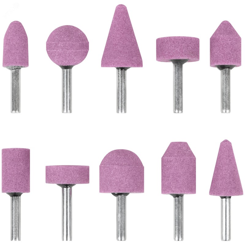 Для шлифовки изделий из стали и цветных металлов. Для работы со шлифмашиной прямой. Абразивный слой из монокристаллического оксида алюминия обладает повышенной твердостью и стойкостью к истиранию. Зернистость Р60 обеспечивает высокую скорость и чистоту обработанной поверхности. Различные формы насадок в комплекте дают возможность выполнения широкого спектра задач. Цилиндрический хвостовик совместим с большинством типов патронов.