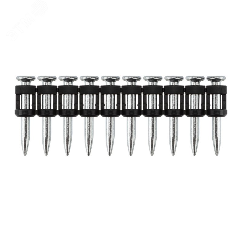 - Преимущества:Высокоуглеродистая сталь устойчива к износу и нагрузкам|Гвозди диаметром 3 мм и твердостью 59 HRC легко пробивают бетон|Подходят также для работы с кирпичом и металлом|Крепеж не ослабнет и не выпадет со временем благодаря улучшенной форме дюбелей