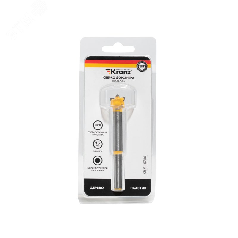 Сверло Форстнера предназначено для эффективной работы с твердыми породами древесины, а также с ДСП, ДВП, клееной древесиной и фанерой. Применяется для изготовления глухих отверстий для мебельной фурнитуры. Используется при производстве мебели и выполнении отделочных работ. Цилиндрический хвостовик позволяет надежно фиксировать сверло в дрелях и шуруповертах с различными системами фиксации. Сверло выполнено из высококачественной стали 45 и обладает повышенной устойчивостью к механическим нагрузкам. Благодаря твердосплавным пластинам из сплава ВК8 твердостью 86-92 HRC инструмент характеризуется высокой производительностью и продолжительным ресурсом работоспособности. Центрирующее острие удерживает сверло на заданной оси, что облегчает засверливание и позволяет получить ровное отверстие.