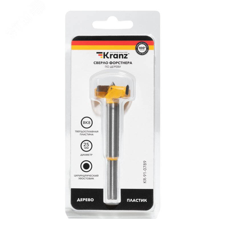 Сверло Форстнера предназначено для эффективной работы с твердыми породами древесины, а также с ДСП, ДВП, клееной древесиной и фанерой. Применяется для изготовления глухих отверстий для мебельной фурнитуры. Используется при производстве мебели и выполнении отделочных работ. Цилиндрический хвостовик позволяет надежно фиксировать сверло в дрелях и шуруповертах с различными системами фиксации. Сверло выполнено из высококачественной стали 45 и обладает повышенной устойчивостью к механическим нагрузкам. Благодаря твердосплавным пластинам из сплава ВК8 твердостью 86-92 HRC инструмент характеризуется высокой производительностью и продолжительным ресурсом работоспособности. Центрирующее острие удерживает сверло на заданной оси, что облегчает засверливание и позволяет получить ровное отверстие.
