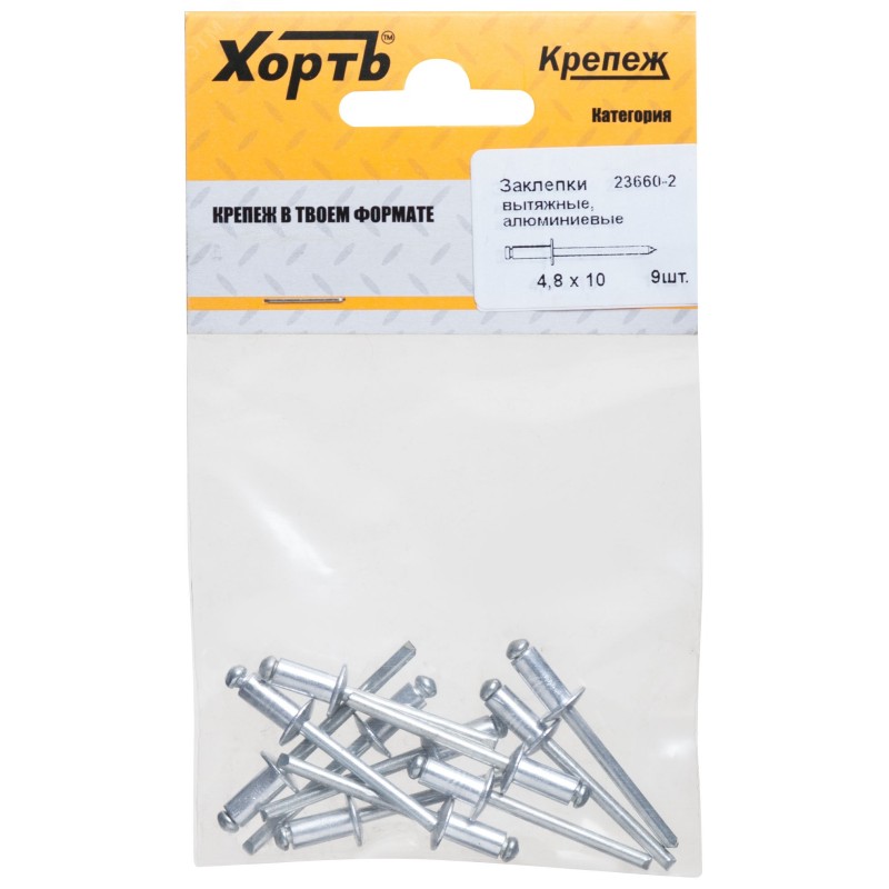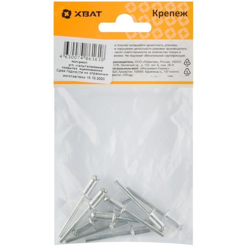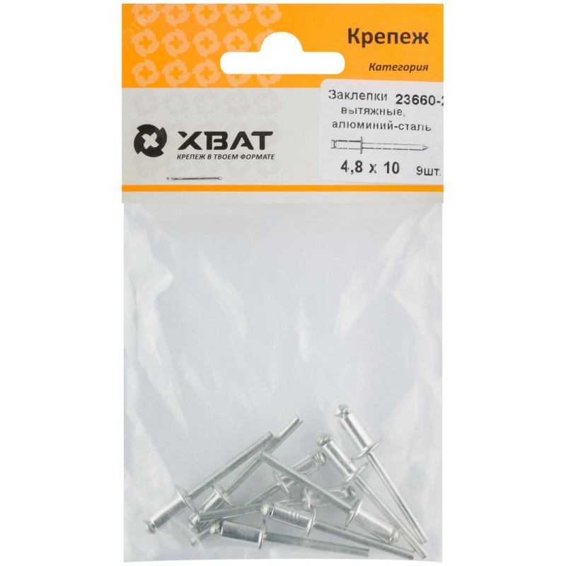 Заклепка вытяжная комбинированная со стандартным бортиком. Перед монтажом заклепки необходимо предварительно просверлить отверстие сверлом, соответствующим диаметру заклепки. В процессе монтажа стержень подтягивает за собой втулку, что позволяет плотно соединить скрепляемые детали. Лишний стержень откусывается.