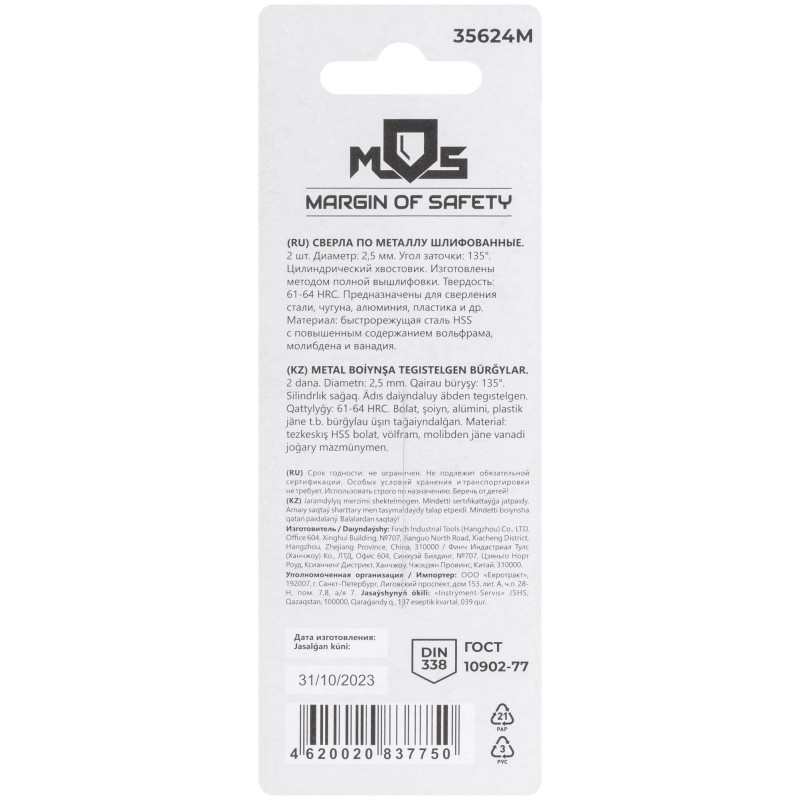 - Тип изделия:Сверло по металлу