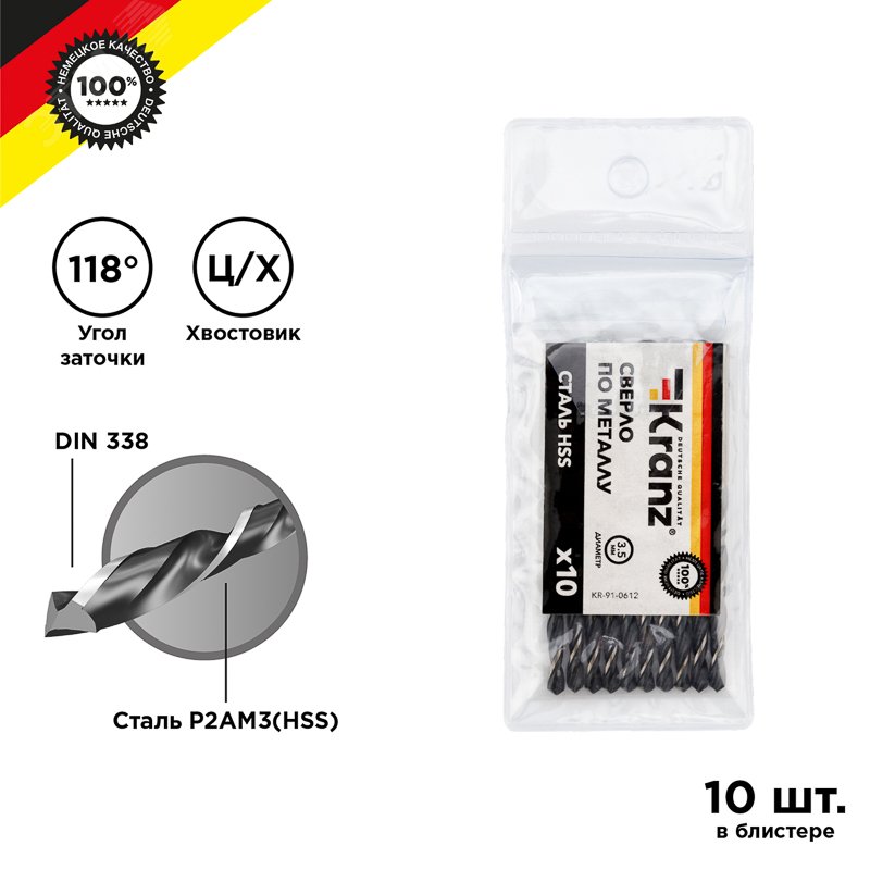 - Комплектация:сверло по металлу - 10 шт.|упаковка