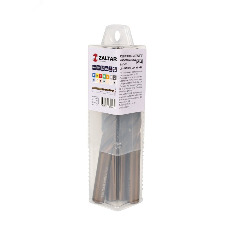 - Дополнительная информация:количество в наборе, шт - 5|технический стандарт - DIN 338|материал - HSS-E Co5|тип сверла - VA|диаметр сверла, мм - 11.5|рабочая длина, мм - 94|длина, мм - 142|глубина реза - 5xD|угол заточки, градусов - 130|угол спирали, градусов - 36|тип хвостовика - цилиндрический|тип заточки - DIN1412-C - крестообразная подточка перемычки