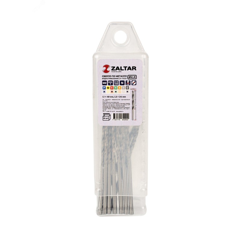 - Дополнительная информация:количество в наборе, шт - 10|технический стандарт - DIN 338|материал - HSS-G|тип сверла - N|диаметр сверла, мм - 2.0|рабочая длина, мм - 24|длина, мм - 49|глубина реза - 5xD|угол заточки - 118 градусов|угол спирали - 25-30 градусов|тип хвостовика - цилиндрический|тип заточки - DIN1412-C - крестообразная подточка перемычки