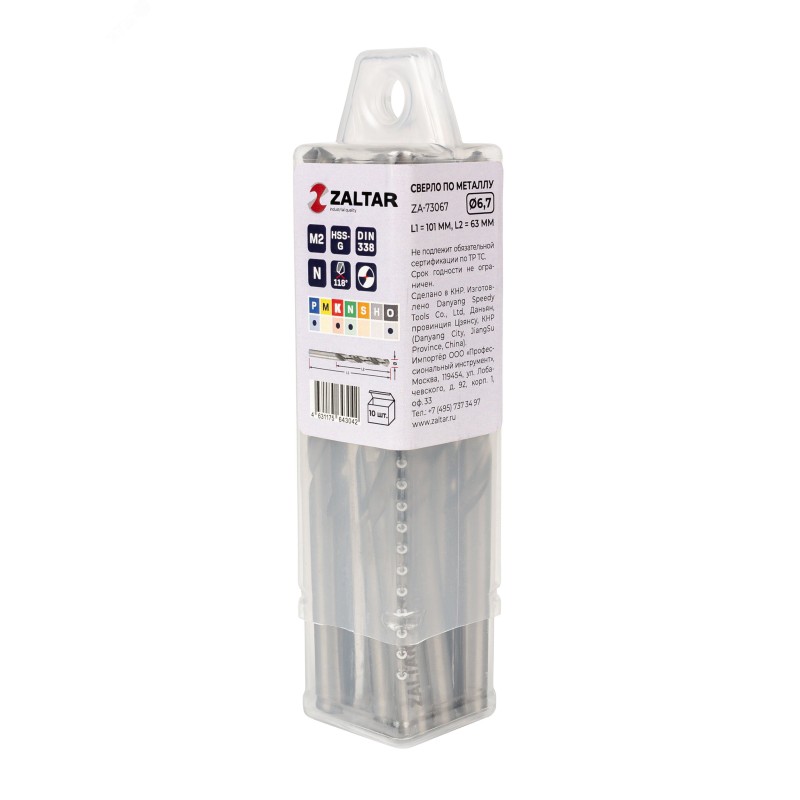 - Дополнительная информация:количество в наборе, шт - 10|технический стандарт - DIN 338|материал - HSS-G|тип сверла - N|диаметр сверла, мм - 6.7|рабочая длина, мм - 63|длина, мм - 101|глубина реза - 5xD|угол заточки - 118 градусов|угол спирали - 25-30 градусов|тип хвостовика - цилиндрический|тип заточки - DIN1412-C - крестообразная подточка перемычки