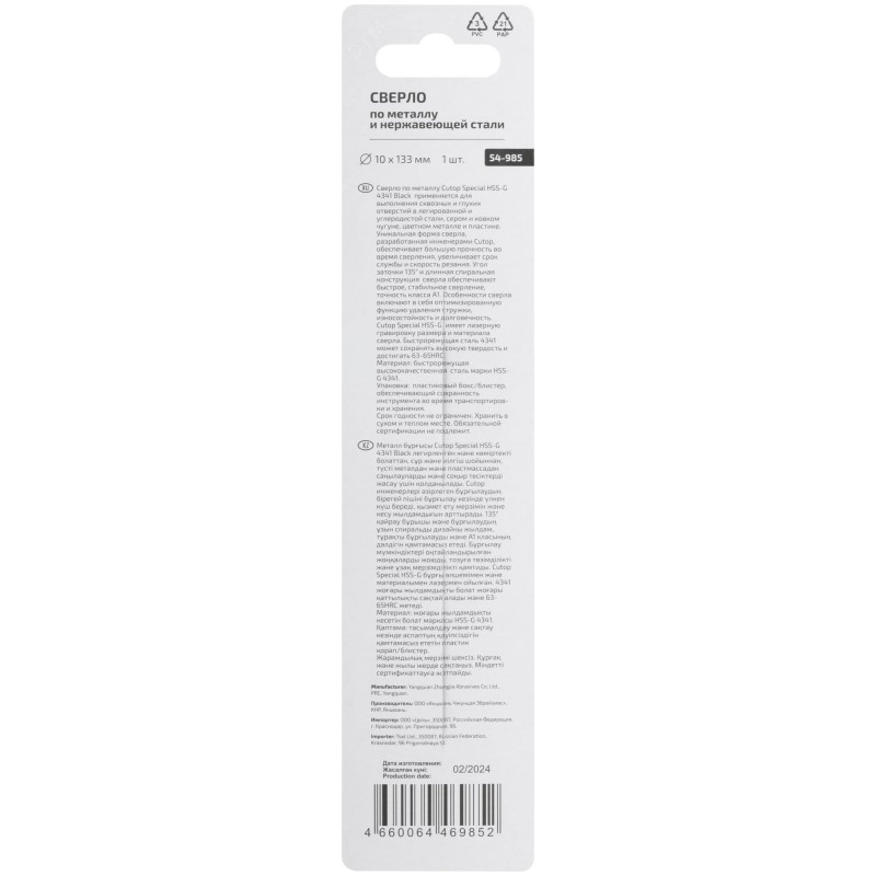 - Тип сверла:По металлу