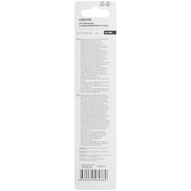 - Тип сверла:По металлу