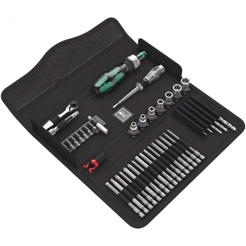 - Дополнительная информация:41 предмет, не повреждающий рабочую поверхность, компактный футляр из износостойкого и долговечного текстиля. Малый вес и объем для повышения мобильности. Компактный набор из 41 важнейшего отверточного инструмента для дерева, прочная трещотка Zyklop Mini для битов 1/4'' с удлинителем и адаптером для головок, 8 головок размера 5,5-13 для ручного и машинного режимов, 1 ручка-трещотка 816 RA, мелкозубчатая механика для обеспечения малого угла возврата, переключатель реверса (вправо, зафиксировано, влево), максимальный момент затяжки 50 Нм и быстрозажимной патрон Rapidaptor, 1 универсальный битодержатель, 6 битов длиной 25 мм, 16 битов длиной 89 мм, 5 спиральных сверл-битов по дереву диаметром 3-8 мм, 1 фиксатор винтов, 1 индикатор напряжения 247.