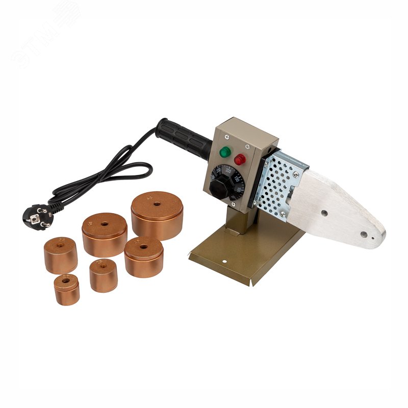 - Преимущества:Компактность|Наличие термостата|Работает более 100 000 циклов|Насадки покрыты двойным тефлоном|Выключатели оборудованы двойным индикатором|Расширенный набор насадок, включающий 20, 25, 32, 40, 50 и 63 мм насадки|Индикация включения и изменения режима