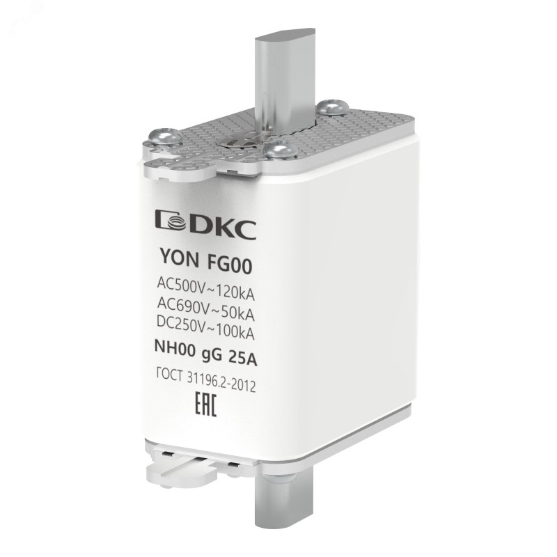 Предохранитель YON ножевого типа FG00 с одинарной индикацией 25А предназначен для защиты от токов перегрузки и короткого замыкания потребителей и кабелей в цепях переменного тока напряжением до 690 В и цепях постоянного тока напряжением до 440 В.