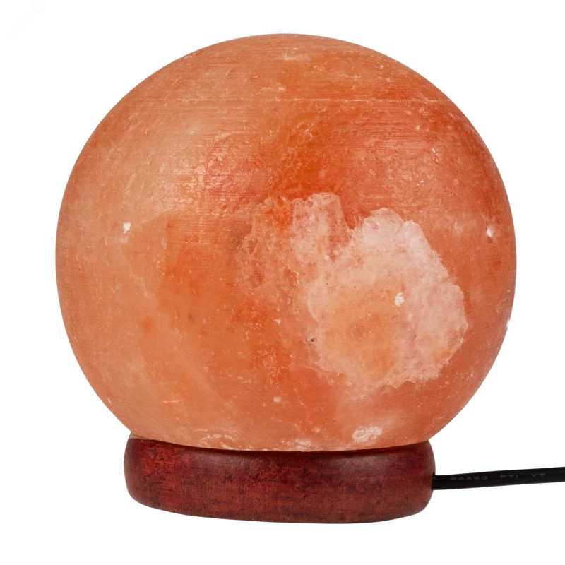 Светодиодный светильник из натуральной гималайской соли. Питание 5В USB, диаметр 10 см, упаковка цветная коробка.