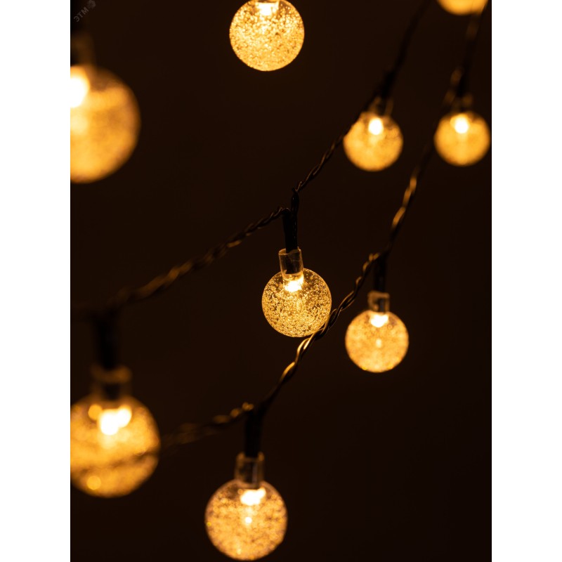 Садовая гирлянда Атмосфера на солнечной батарее 7,8 м (длина рабочей части 5,8 метров) 2 режима 30 LED ЭРА ERASF23-20. В дневное время гирлянда подзаряжается естественным способом с помощью встроенной солнечной батареи, вечером автоматически включается, создаёт яркую дополнительную подсветку и красивый световой узор.