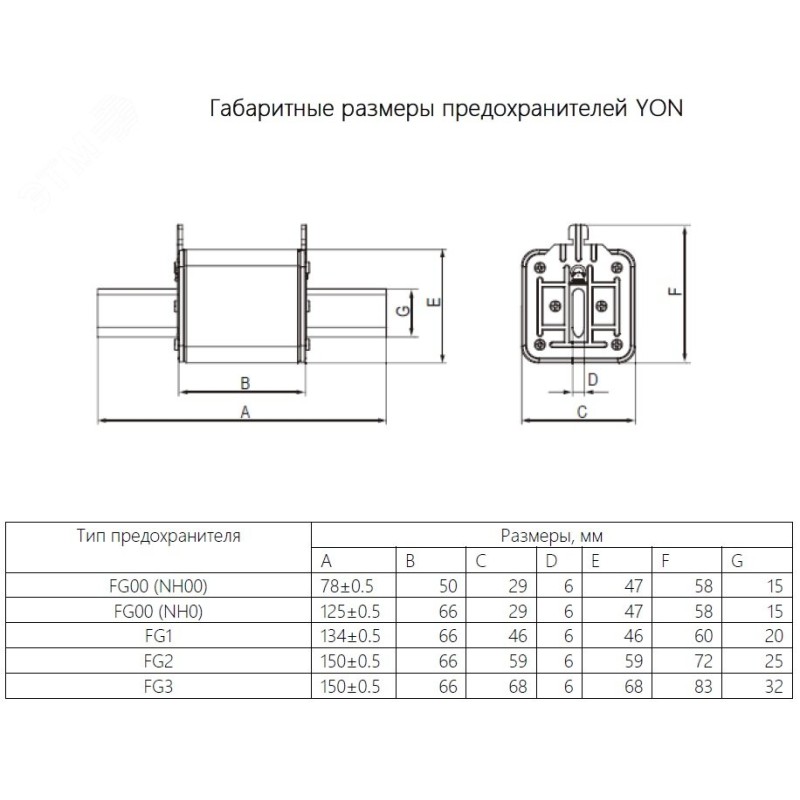 Предохранитель YON ножевого типа F2 200 А 690V характеристика arya