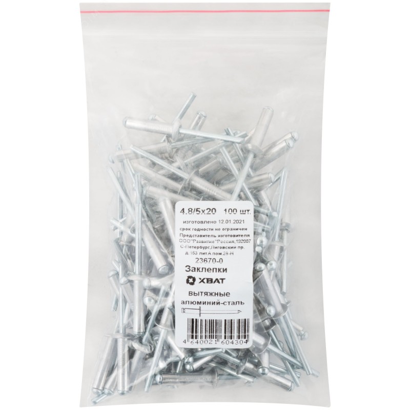 Заклепка вытяжная комбинированная со стандартным бортиком. Перед монтажом заклепки необходимо предварительно просверлить отверстие сверлом, соответствующим диаметру заклепки. В процессе монтажа стержень подтягивает за собой втулку, что позволяет плотно соединить скрепляемые детали. Лишний стержень откусывается.