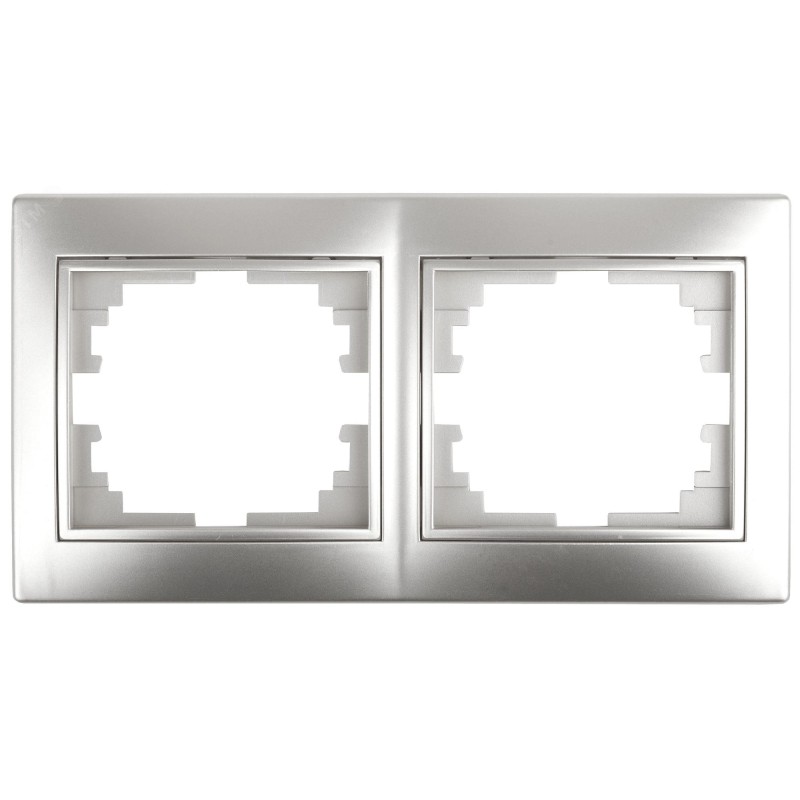 Рамка для розеток и выключателей Intro Plano 1-502-03 на 2 поста горизонтальная, СУ, алюминий