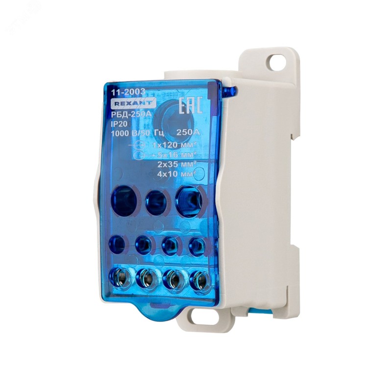 Распределительные блоки РБД REXANT предназначены для использования в качестве клеммного зажима при подключении к проводнику большего сечения нескольких проводников меньшего сечения, для создания упорядоченных систем распределения в шкафах, для организации главной заземляющей шины.