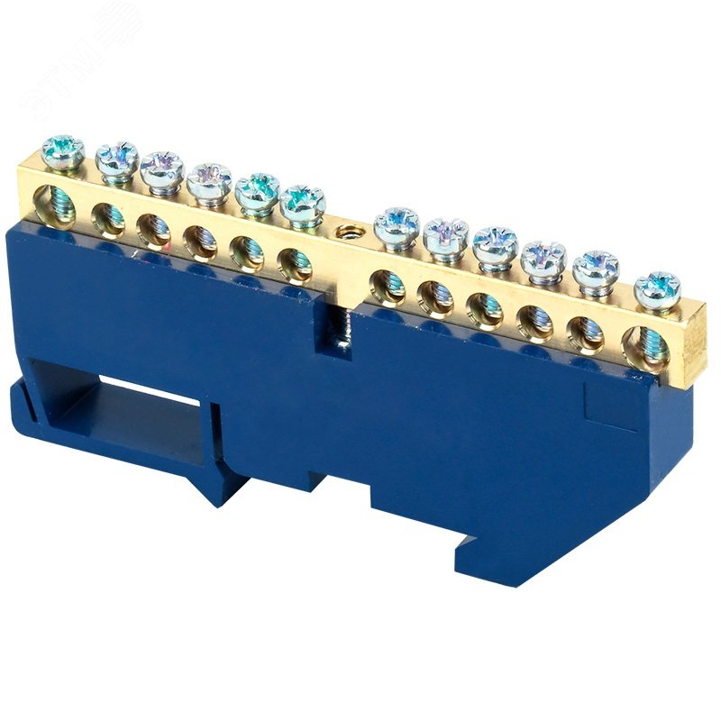 Шина ''N'' нулевая с синим изолятором на DIN-рейку 6x9 мм стойка бол. 12 групп, REXANT