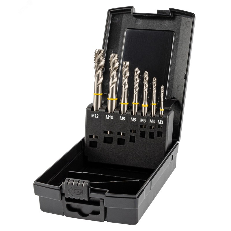 - Дополнительная информация:количество в наборе, шт - 7|технический стандарт - DIN 371 и DIN 376|материал - HSS-E|тип резьбы - M - метрическая|размер резьбы - M3 / M4 / M5 / M6 / M8 / M10 / M12|допуск - 6H|направление резьбы - правое|угол резьбы - 60 градусов|тип машинного метчика - 35 градусов RSP|тип стружечной канавки - винтовой|для глухих отверстий