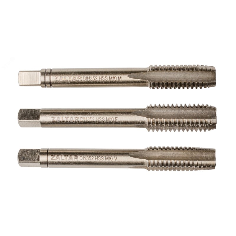 метчик ручной HSS DIN 352, Nr.1, тип A - черновой, M10 x 1.5|метчик ручной HSS DIN 352, Nr.2, тип D - чистовой, M10 x 1.5|метчик ручной HSS DIN 352, Nr.2, тип C - финишный, M10 x 1.5
