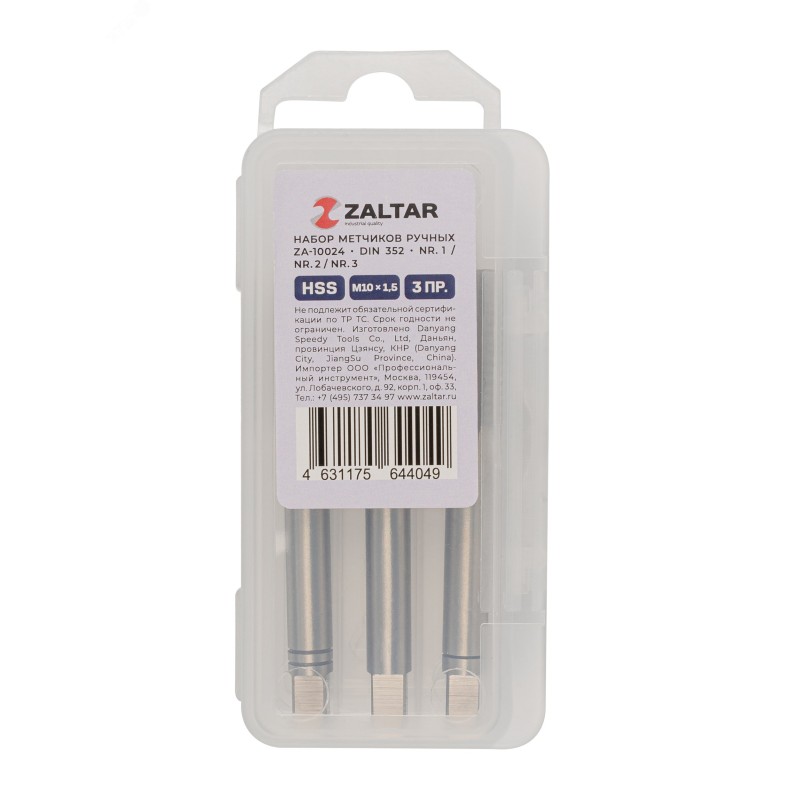 HSS - DIN 352 - M - для метрической резьбы ISO DIN 13 - Допуск 6H|Для обработки цилиндрической метрической резьбы с крупным шагом с углом профиля 60 градусов (M)|Изготовлены из быстрорежущей стали HSS M2 (аналог Р6М5)|Рекомендовано для обработки стали до 800 Н/мм2, алюминия, латуни, пластика, допустимо для обработки бронзы, чугуна|Каждый комплект состоит из трёх метчиков - чернового, получистового, чистового|Для сквозных и глухих отверстий