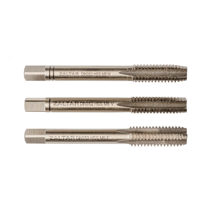 - Комплектация:метчик ручной HSS DIN 352, Nr.1, тип A - черновой, M8 x 1.25|метчик ручной HSS DIN 352, Nr.2, тип D - чистовой, M8 x 1.25|метчик ручной HSS DIN 352, Nr.2, тип C - финишный, M8 x 1.25