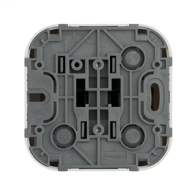 - Преимущества:Современный формат накладного монтажа|Механизм изготовлен из высококачественного поликарбоната, не проводит электрический ток, не поддерживает горение|Простое выравнивание изделий при установке в ряд, благодаря специальной форме основания|Корпус ударопрочный из пластичного полипропилена, стойкого к внешним воздействиям|Перфорация на корпусе для безошибочного вырезания отверстий при монтаже открытой проводки|В основании преднарезаны 4 отверстия для подвода кабеля при монтаже скрытой проводки