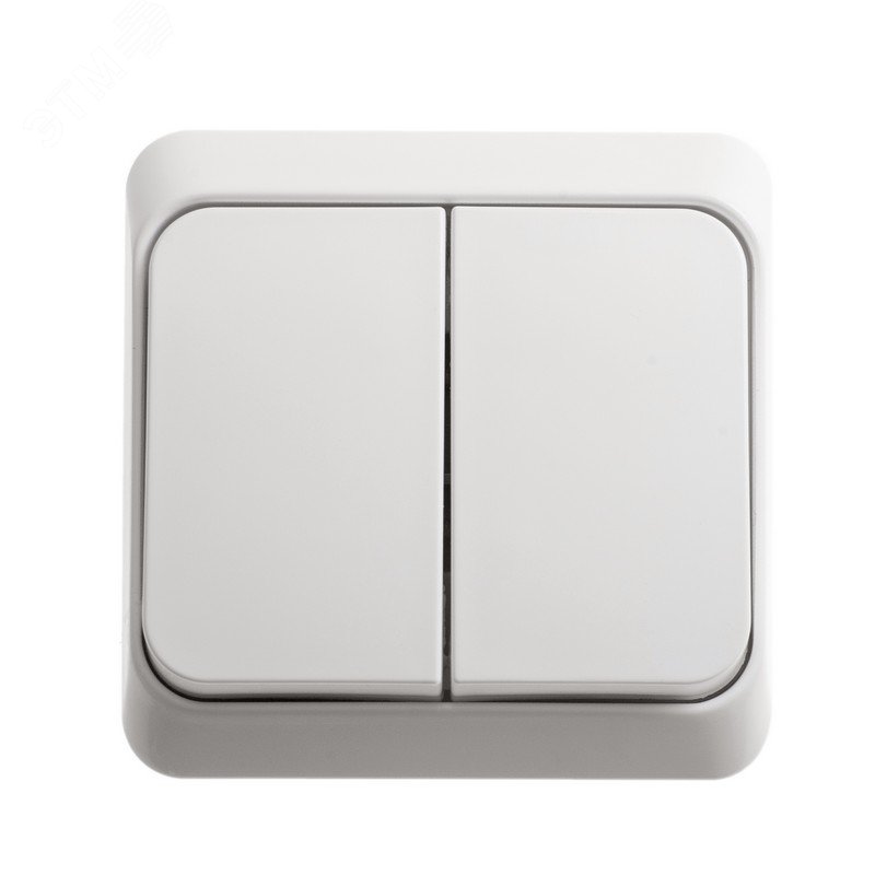 Выключатель Systeme Electric (ранее Schneider Electric) ЭТЮД (белый, открытой установки) двухклавишный предназначен для применения в сетях до 250В, на ток до 10А. Две клавиши позволяют управлять двумя источниками света с одной точки. Он прост в установке и удобен в применении. Сделано в России.