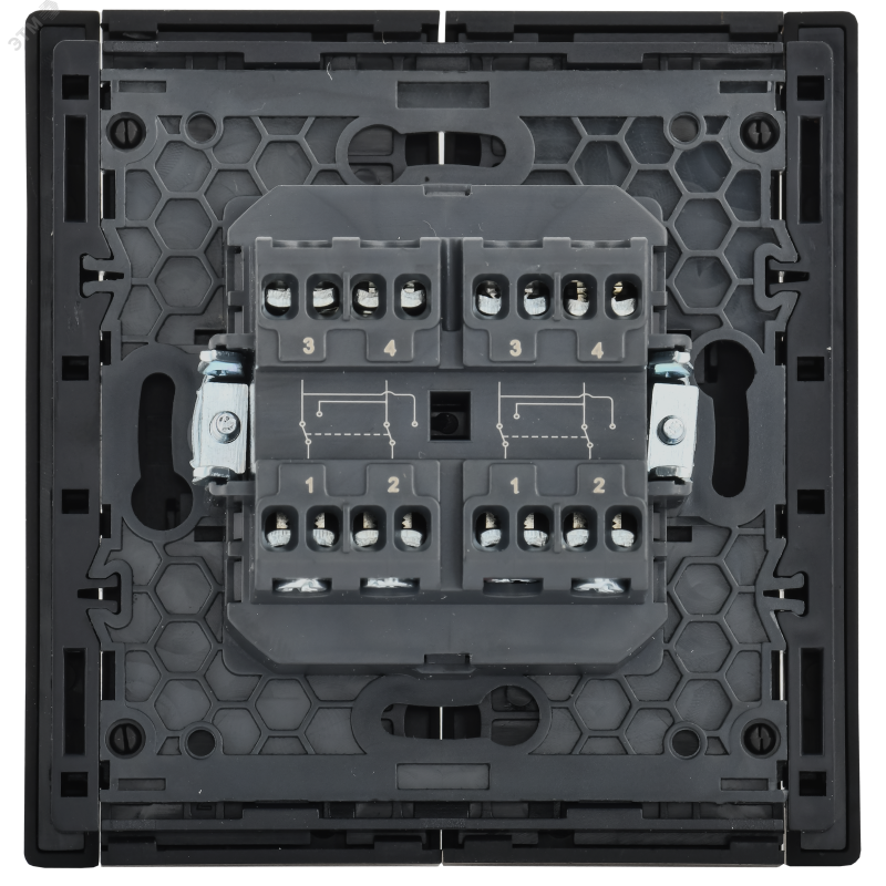 - Преимущества:Фиксация лицевой панели без винтов|Готовое решение, нет необходимости приобретать рамку|Безграничное количество постов по горизонтали|Запатентованная технология.