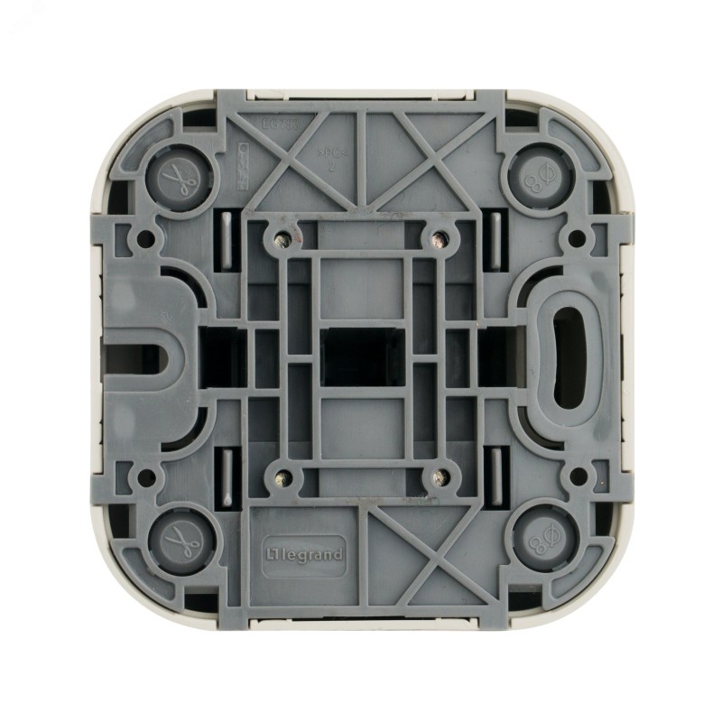 - Преимущества:Современный формат накладного монтажа|Механизм изготовлен из высококачественного поликарбоната, не проводит электрический ток, не поддерживает горение|Простое выравнивание изделий при установке в ряд, благодаря специальной форме основания|Корпус ударопрочный из пластичного полипропилена, стойкого к внешним воздействиям|Перфорация на корпусе для безошибочного вырезания отверстий при монтаже открытой проводки|В основании преднарезаны 4 отверстия для подвода кабеля при монтаже скрытой проводки