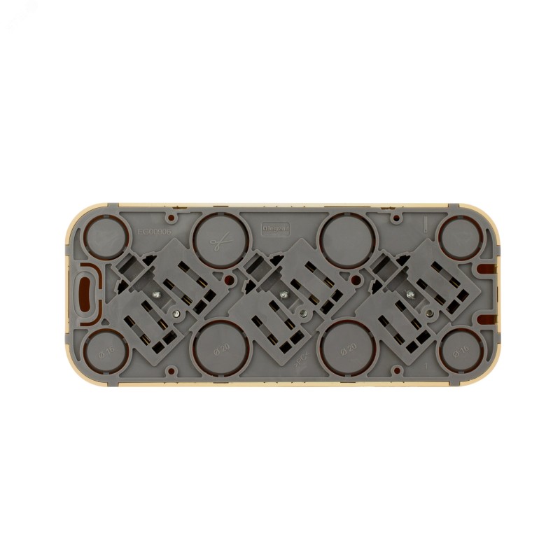 - Преимущества:Современный формат накладного монтажа|Механизм изготовлен из высококачественного поликарбоната, не проводит электрический ток, не поддерживает горение|Простое выравнивание изделий при установке в ряд, благодаря специальной форме основания|Корпус ударопрочный из пластичного полипропилена, стойкого к внешним воздействиям|Перфорация на корпусе для безошибочного вырезания отверстий при монтаже открытой проводки|В основании преднарезаны 4 отверстия для подвода кабеля при монтаже скрытой проводки