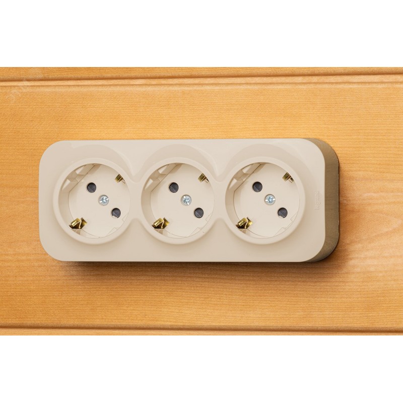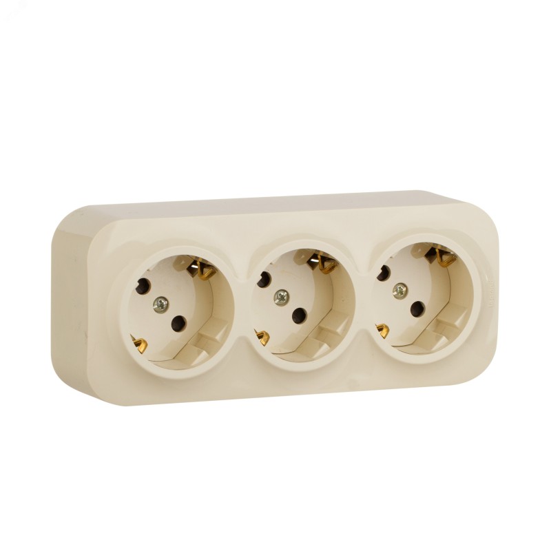 Тройная розетка с заземлением, со шторками QUTEO. Применяется в зданиях, оборудованных для повышения безопасности проводкой с заземлением (с защитным проводником). Рекомендуются к применению в помещениях в которых могут быть дети. Шторки осуществляют защитную функцию путём ограничения доступа к токоведущим контактам. Доступ открывается только при подключении вилки.