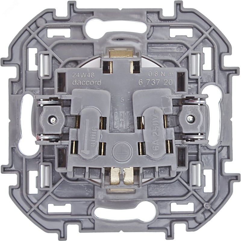 - Преимущества:Контактная группа изготовлена из высококачественной латуни CuZn37, имеет высокую степень упругости и сохраняет плотный контакт с вилкой, при длительной эксплуатации|Скоба заземления имеет особый профиль для большей прочности|Зажимы для присоединения проводников винтовые П-образной формы для исключения бокового выдавливания провода|В зажимах установлены качественные винты с никель-цинковым напылением для надежного резьбового соединения даже при чрезмерных моментах затяжки|Все токоведущие части розетки имеют защиту от случайного прикосновения|Лицевая панель крепится на защелкахИзготовлена из прочного поликарбоната, стойкого к механическим воздействиям, выгоранию и загрязнениям|Материал механизма и суппорта - высококачественный поликарбонат: обладает высокой электробезопасностью, термостабильностью и не поддерживает горение|Простое выравнивание изделий при установке в ряд, благодаря специальной форме суппорта