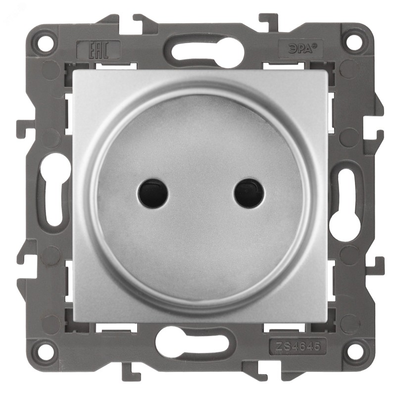 Розетка ЭРА серии Elegance 14-2105-03 без заземления скрытой установки цвет алюминий, номинальные характеристики - 16A-250В, IP20. Выполнена из качественного поликарбоната, латуни и сплава серебра. оснащена безвинтовым типом клемм.