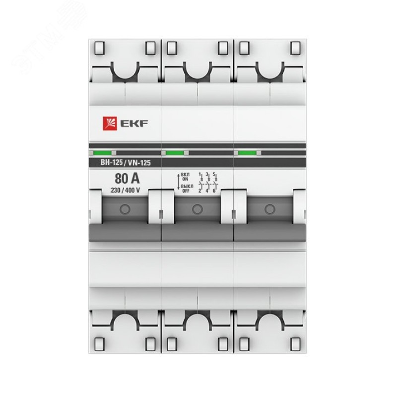 - Комплектация:выкл. нагрузки 3P 80А ВН-125 EKF