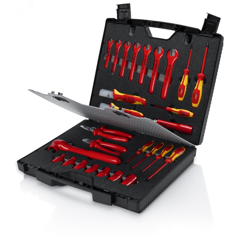 - Преимущества:Чемодан из ударопрочной пластмассы|Укомплектован ассортиментом электроизолированных инструментов KNIPEX для работы с электроустановками|Вкладыши из поропласта с ячейками для размещения инструментов|Фиксируемая перегородка|Pазмеры, внешние (Ш х В х Г) – 440 x 105 x 385 мм