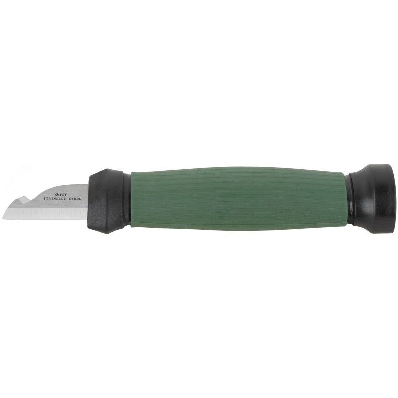 - Преимущества:лезвие изготовлено из износостойкой нержавеющей стали, не подверженной коррозии|заточенное лезвие обеспечивает высокую эффективность работ|специальная выемка на лезвии оптимальна для снятия изоляции|эргономичная пластиковая прорезиненная ручка предотвращает проскальзывание и обеспечивает надежный хват|пластиковые ножны обеспечивают безопасность при транспортировке и хранении