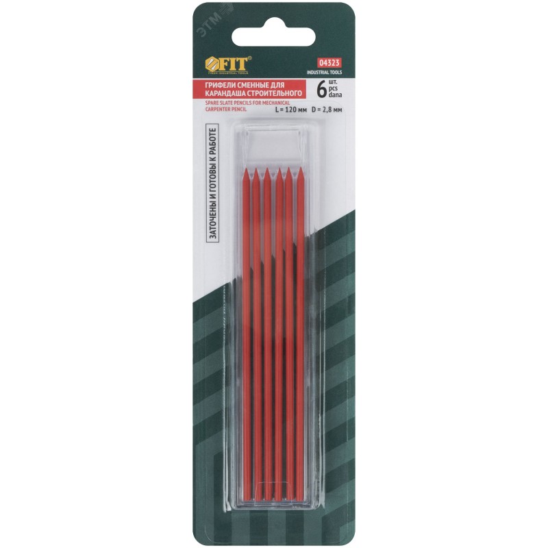 Для нанесения разметки на поверхности из бумаги, картона, дерева, металла, камня, ткани и стекла. Длина 120 мм позволяет использовать один грифель длительное время. 6 грифелей в комплекте дают возможность выполнения большого объема разметки. Твердость 2В способствует нанесению яркой и четкой разметки. Пластиковый пенал обеспечивает организованное и безопасное хранение. Все грифели заточены и готовы к использованию.