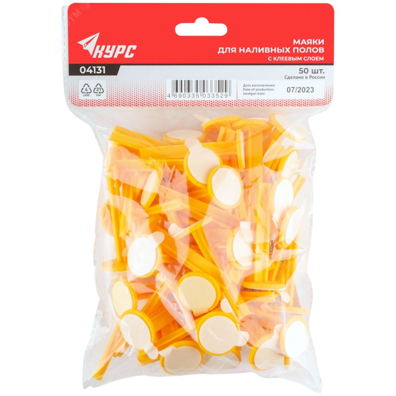 - Преимущества:Способствуют повышению точности заливки составов для наливных полов|Позволяют заливать полы толщиной до 7 см|Маяки четко видны во время работы за счет яркого желтого цвета|Мерная шкала дает возможность точно контролировать уровень заливки|Не деформируются под воздействием раствора
