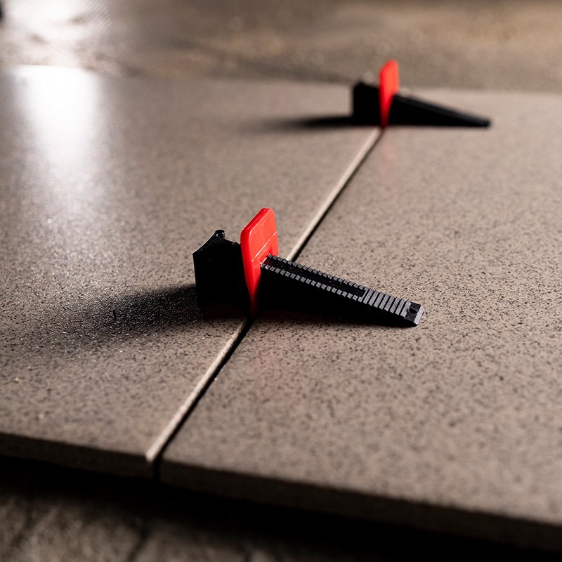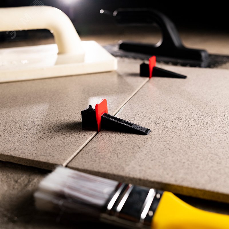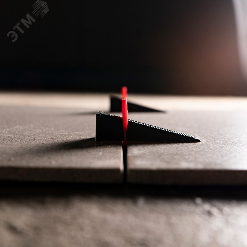 - Преимущества:Позволяет быстро и точно укладывать плитку|Клипсы сделаны из первичного пластика, что делает ее крепкой (не ломается при зажатии)|Клипса при сбитии обламывается ровно по отсечкам у основания клипсы|Возможно многоразовое использование клина|Частые насечки по верху клина позволяют более точно дозировать усилие при зажиме