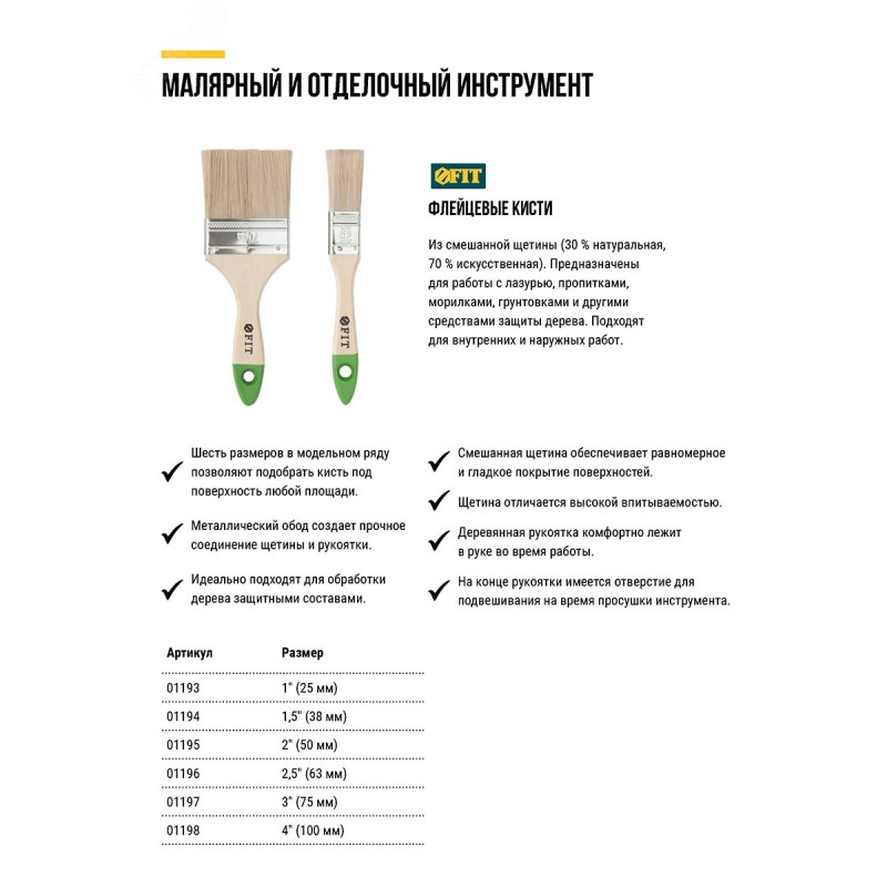 - Преимущества:смшанная щетина позволяет работать с деревозащитными материалами|щетина обладает высокой впитываемостью|металлический обод надежно фиксирует щетину с ручкой|эргономичная лакированная деревянная ручка|отверстие в ручке для хранения и сушки