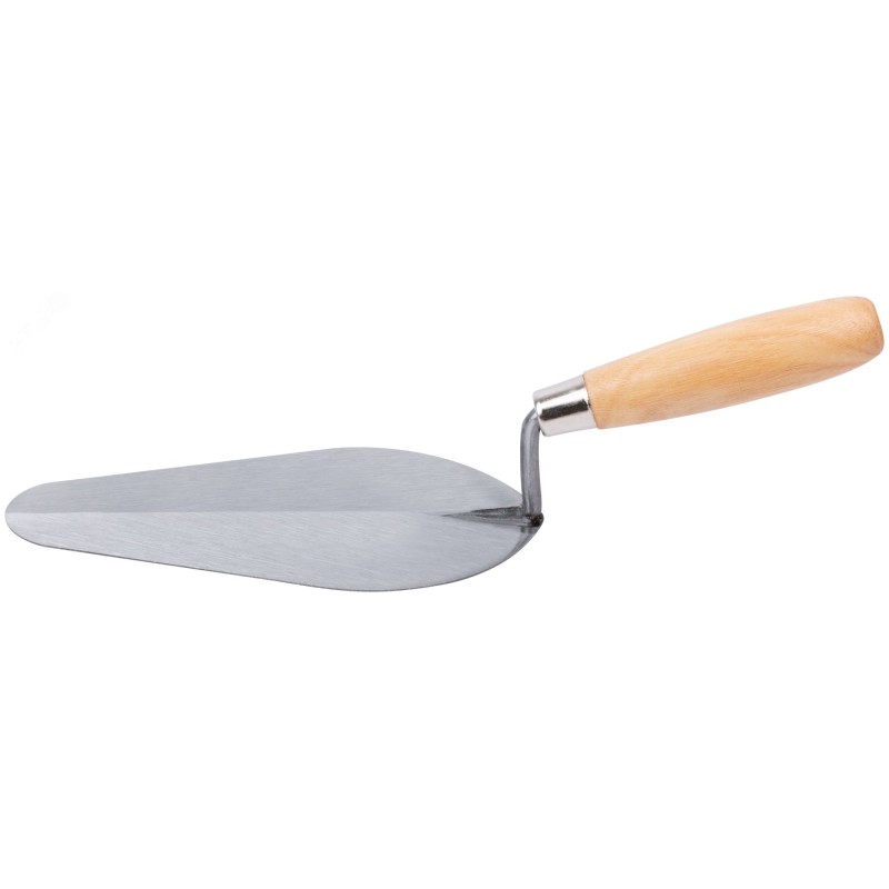 утолщенное полотно обладает высокой жесткостью и износостойкостью|сварка обеспечивает высокую прочность соединения ручки с полотном|ручка расположена под углом относительно полотна для удобства в работе|шлифованная эргономичная деревянная ручка