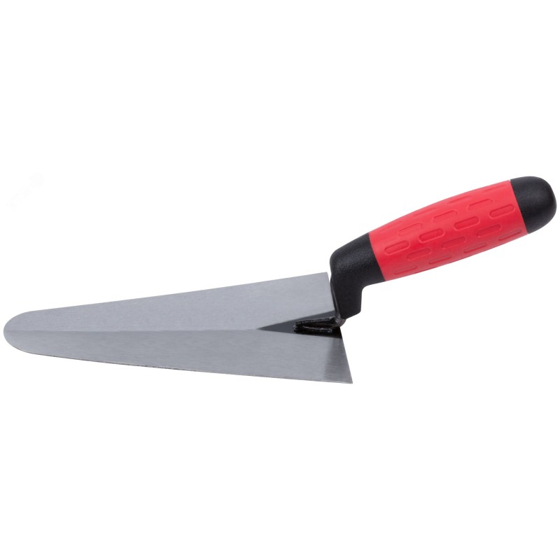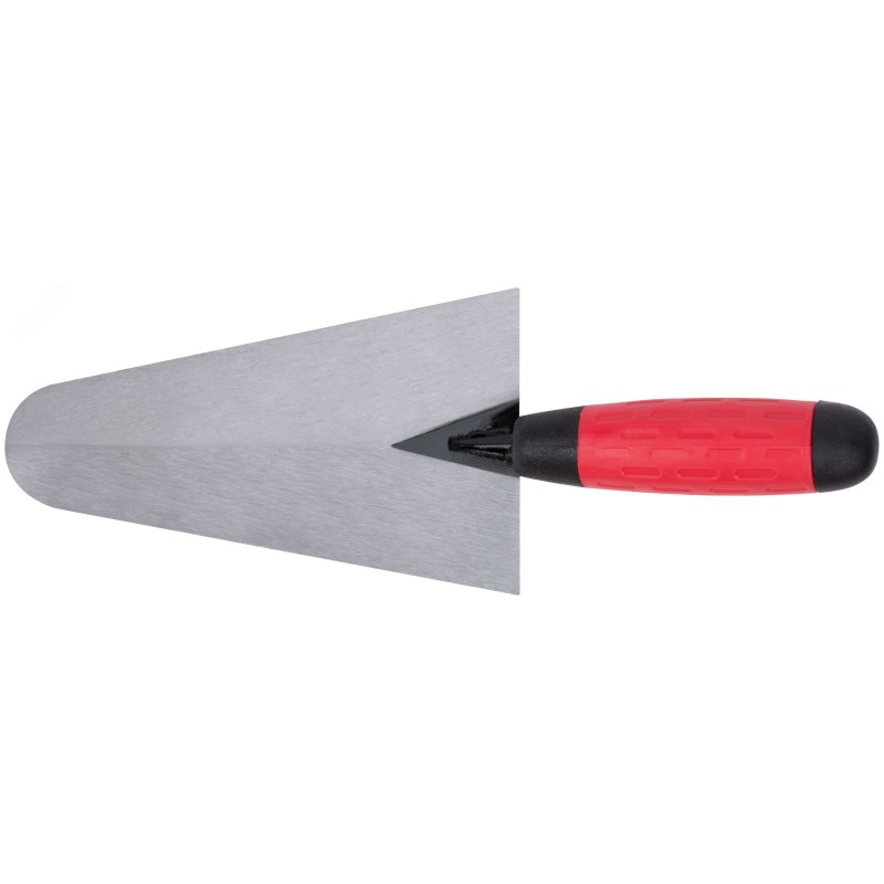 - Преимущества:утолщенное полотно обладает высокой жесткостью и износостойкостью|сварка обеспечивает высокую прочность соединения ручки с полотном|ручка расположена под углом относительно полотна для удобства в работе|эргономичная противоскользящая пластиковая прорезиненная ручка