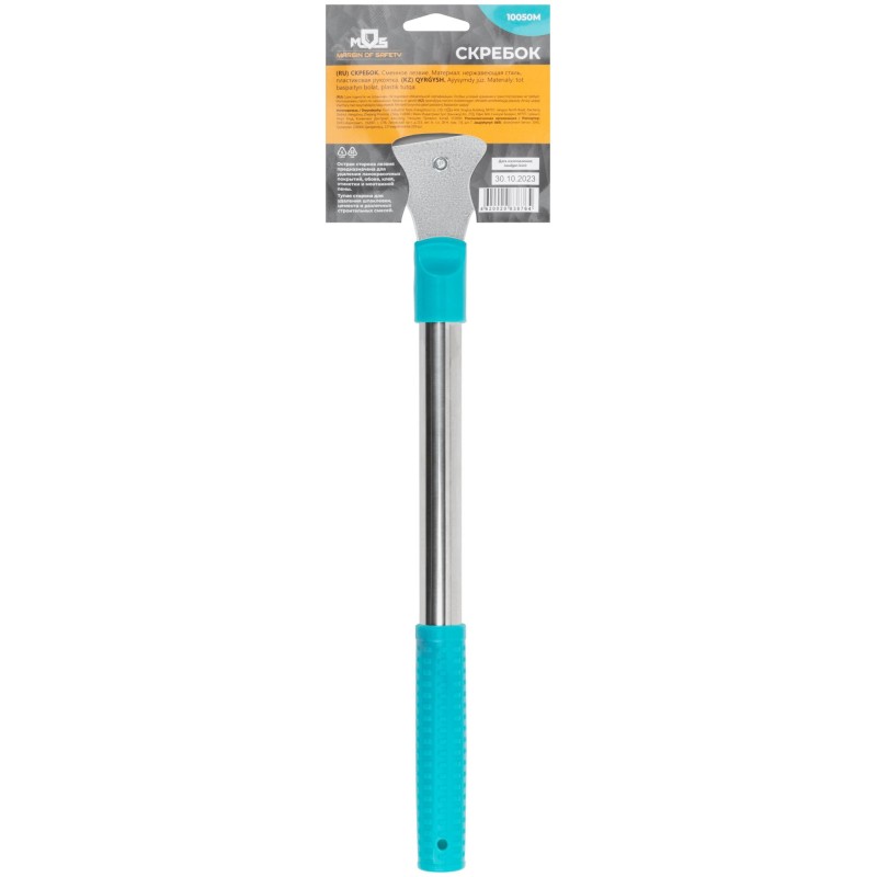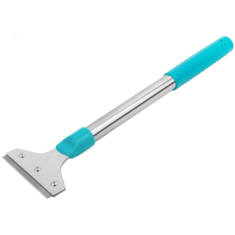 Скребок идеально подходит для очистки гладкой поверхности из кафеля, стекла и керамики. Материал – нержавеющая сталь, пластиковая рукоятка. Упаковка – картонный подвес.