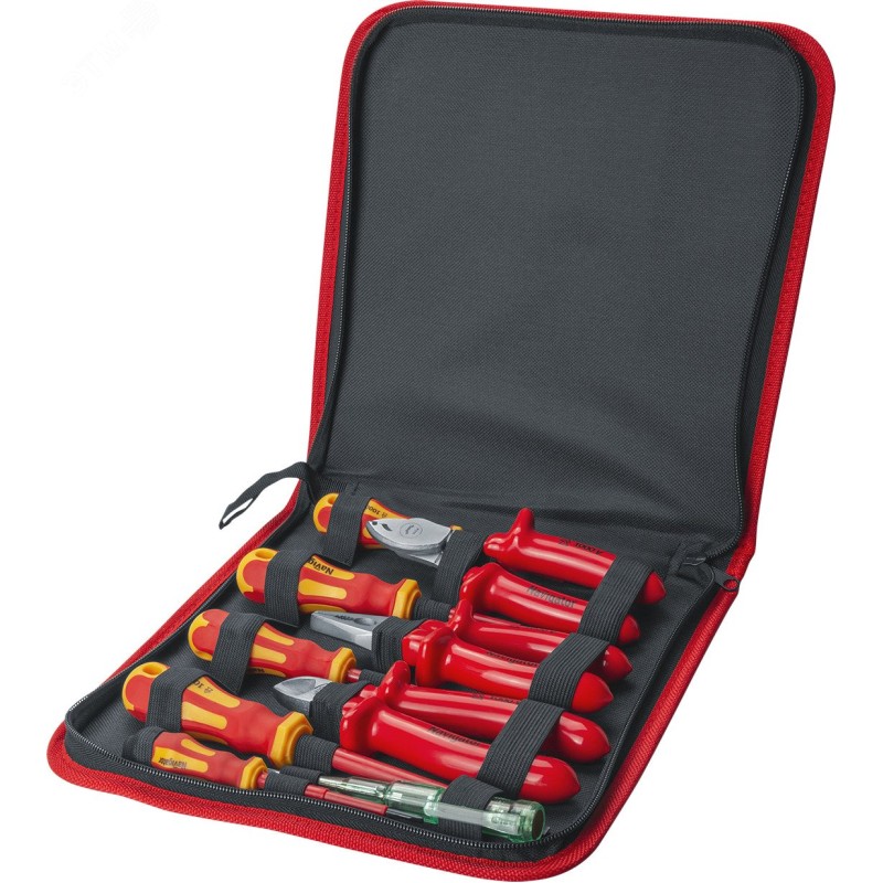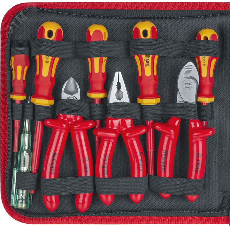 Набор диэлектрического инструмента Navigator NHT-Ind07-H9 предназначен для проведения широкого спектра профессиональных электротехнических и электромонтажных работ в установках с напряжением до 1000 В. Эргономичный и прочный тканевый кофр обеспечивает безопасное хранение и транспортировку инструмента.