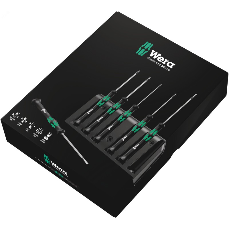 - Преимущества:Отвёртки Kraftform Micro для винтов со шлицем и Phillips|Многокомпонентная ручка Kraftform Micro для быстрого и эргономичного завинчивания|С защитой от перекатывания и подвижной головкой для скоростного вращения|Наконечник Wera Black Point обеспечивает точность работы и оптимальную защиту от коррозии|С индикатором Take it easy - Цветовая маркировка профиля и гравировка размера