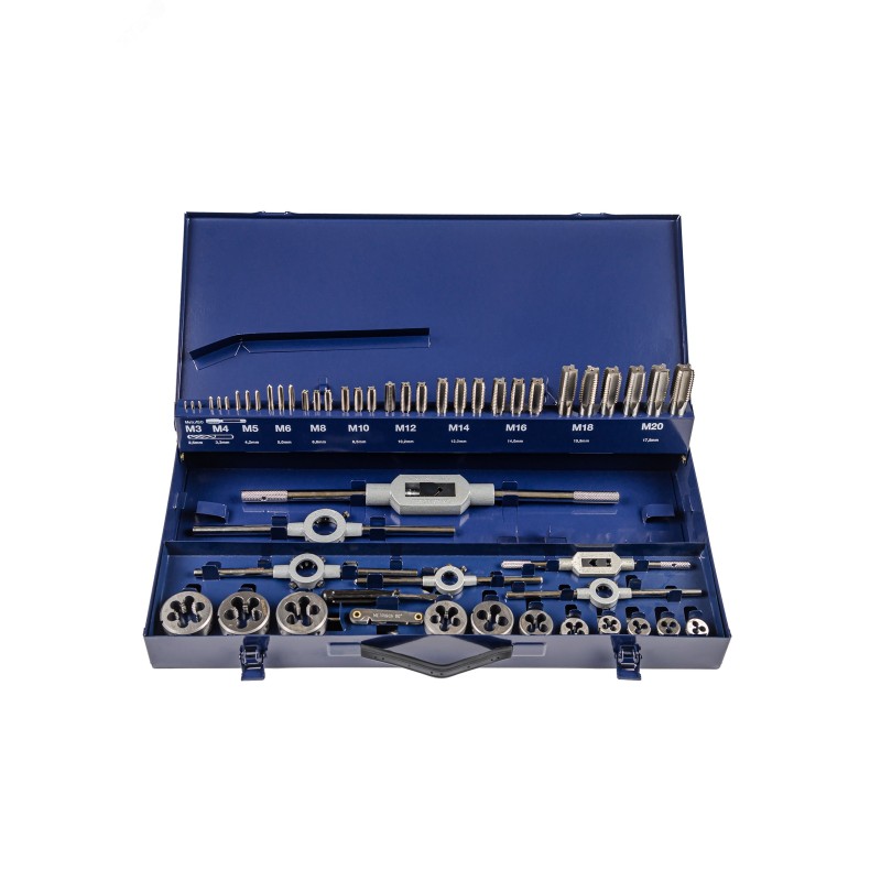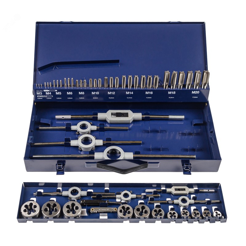 - Комплектация:наборы ручных метчиков (черновой, средний, чистовой) DIN 352 + плашки круглые DIN EN 22568, DIN 223 B - M3 / M4 / M5 / M6 / M8 / M10 / M12 / M14 / M16 / M18 / M20|метчикодержатели регулируемые DIN 1814 - Gr. 1 / Gr. 3|плашкодержатели DIN 225 - 20x5 / 20x7 / 25x9 / 30x11 / 38x14 / 45x18 мм|отвёртка|резьбомер