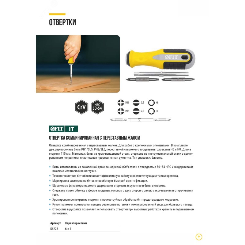 - Тип наконечника:PH1, PH2, SL5, SL6, H6, H8