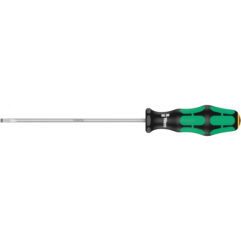 - Преимущества:Шлицевая отвёртка для электриков|Многокомпонентная ручка Kraftform для быстрого и эргономичного завинчивания|С индикатором Take it easy - Цветовая маркировка профиля и гравировка размера|С шестигранным наплывом ручки для защиты от перекатывания|Наконечник Lasertip для лучшего контакта с головкой винта