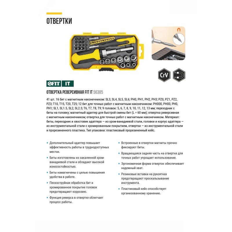 - Преимущества:дополнительный адаптер повышает эффективность работы в труднодоступных местах|биты изготовлены из закаленной хром-ванадиевой стали и обладают высокой износостойкостью|биты намагничены с целью повышения удобства в работе|пескоструйная обработка бит и хромированное покрытие предотвращают коррозию|функция реверса повышает скорость работы|встроенные в отвертки магниты прочно фиксируют биты|вращающийся наконечник на отвертке для точных работ повышает эффективность работ|эргономичные формы отверток обеспечивают надежный хват|резиновые вставки на рукоятках предотвращают проскальзывание инструмента|пластиковый кейс способствует организованному хранению